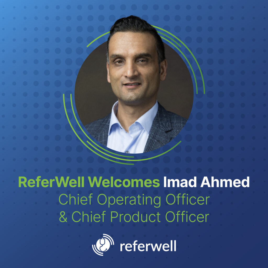 “I am honored to join ReferWell to help advance its mission to get people more engaged in their healthcare experience,” said Imad Ahmed, “ In my new role I look forward to working in collaboration with our dedicated team of executives to build solutions that remove barriers, improve engagement, and create a lasting impact on patient health and system performance.”
